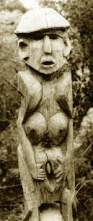 Estatua guardiana de Magar Bridge, Nepal. Diosa irlandesa de la fertilidad Sheela Na Gi